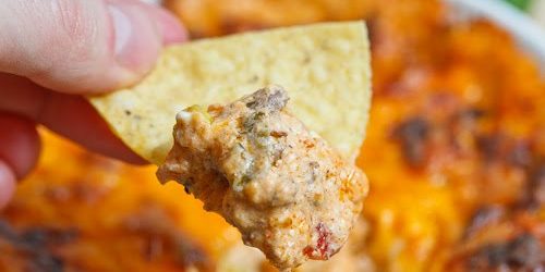 - Cream Philadelphia cheese and sour cream until smooth. Spread evenly in serving dish. Top with Salsa sauce. Top cream cheese base with ground turkey mixture and garnish with peppers.