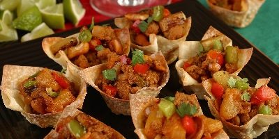 - Place won-ton wrappers in small muffin tins. Fill each won ton with mixture and brush light y with melted margarine.